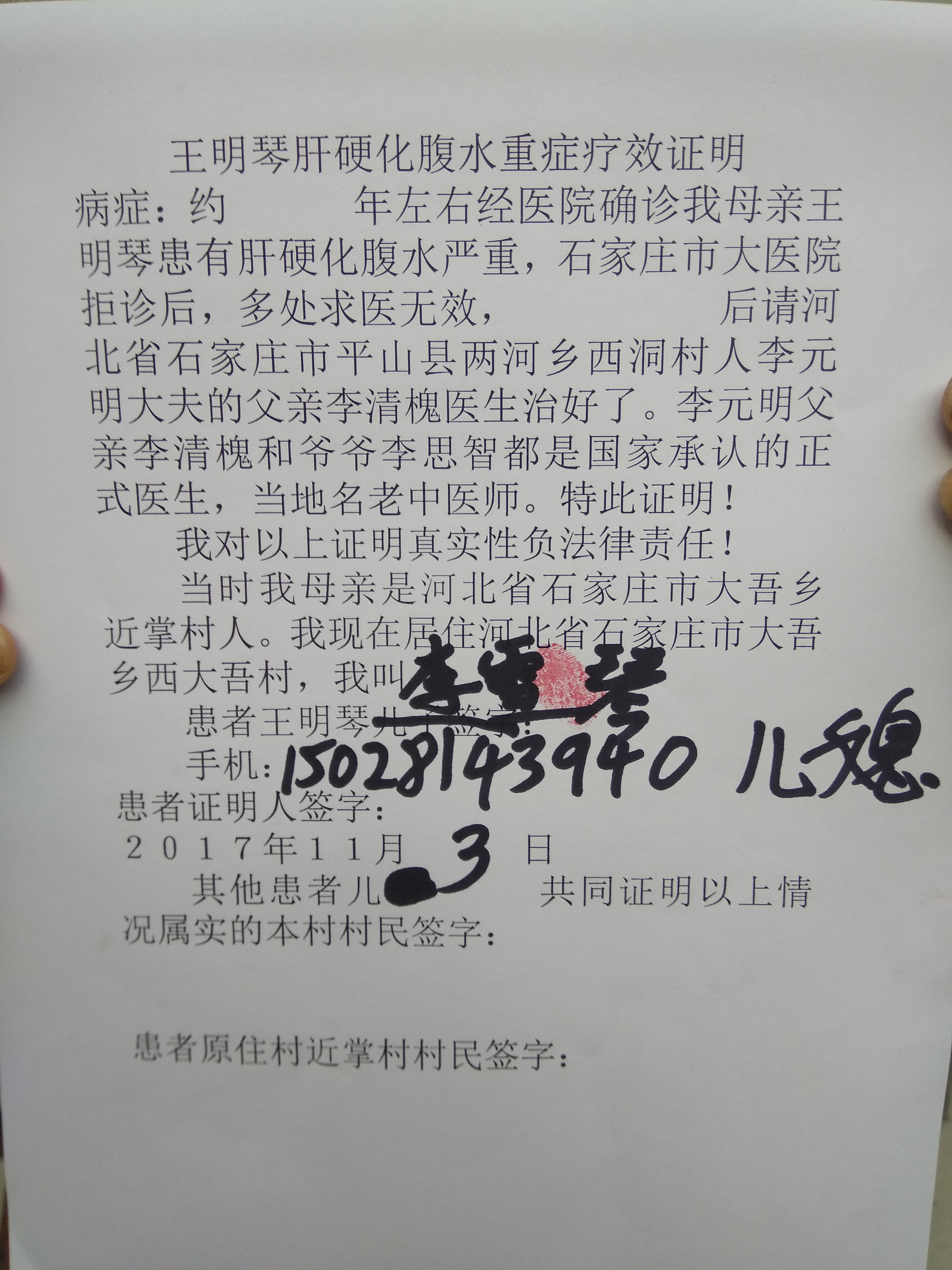李元明大夫父亲李清槐大夫治愈李联海肝硬化腹水大量吐血