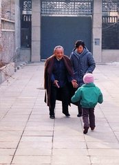 1988年2月,小顽童邓卓棣给爷爷照相。