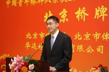 邓卓棣在中国青年桥牌北京桥牌竞赛会场发言。