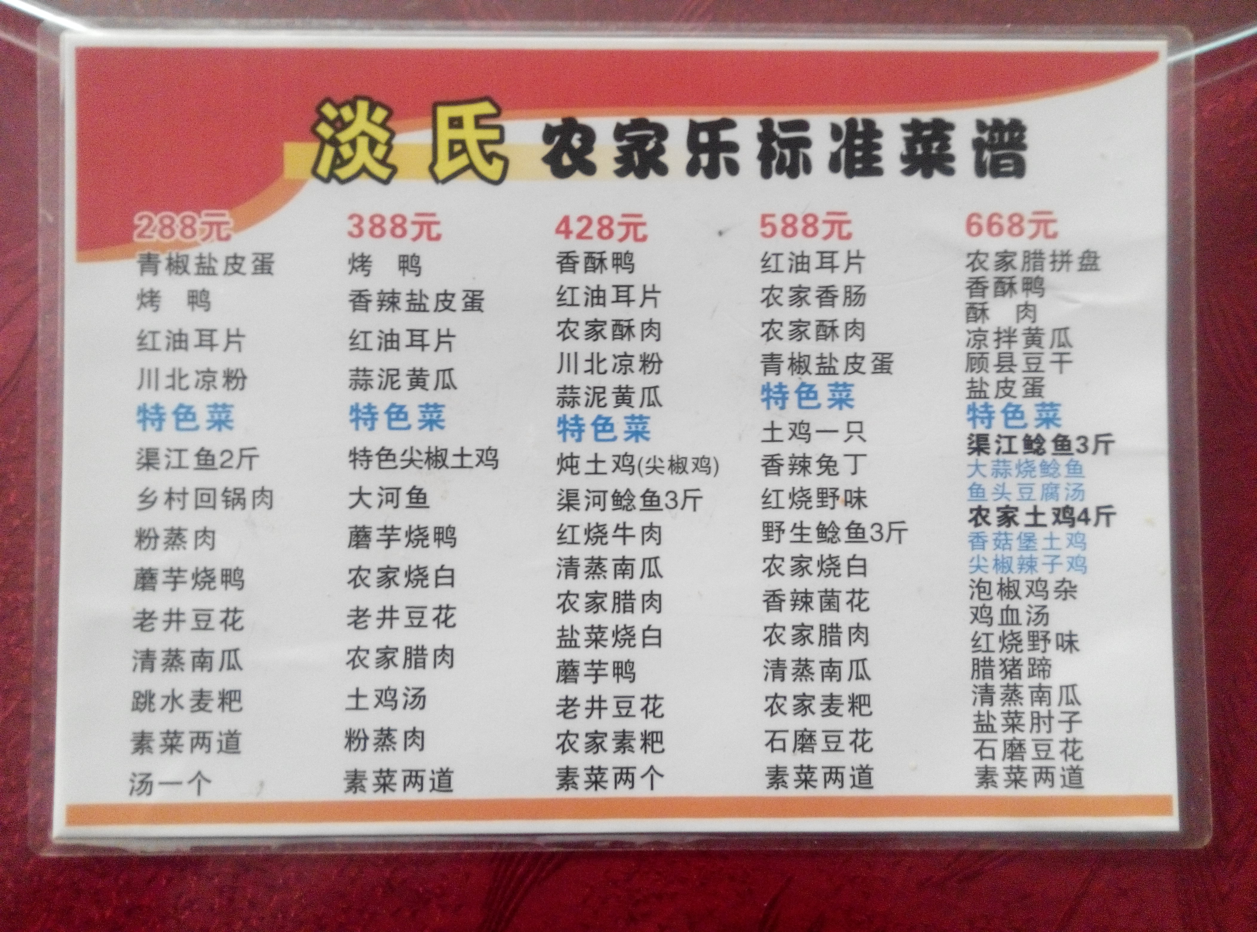 饭菜是典型的农家饭菜,吃起来感觉很好,大家都兴致勃勃,争先恐后抢着吃,全无在大酒店里那种拘束和作态。淡文全坐在一旁,微笑着听我们的夸赞,脸上浮起一丝满足感。他的老伴和女儿不停地给我们端菜、续茶水,一条小狗也凑兴在我们脚下钻来钻去。 这顿饭我们吃的很饱,一结帐,5个人只花了190元。淡家女儿在给我们结帐时,不失时机地每个人都送上了“淡氏农家”的名片,请大家帮助给予推荐。令人感叹,在市场竞争中,即便是邓小平的亲戚也不能例外。