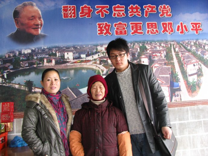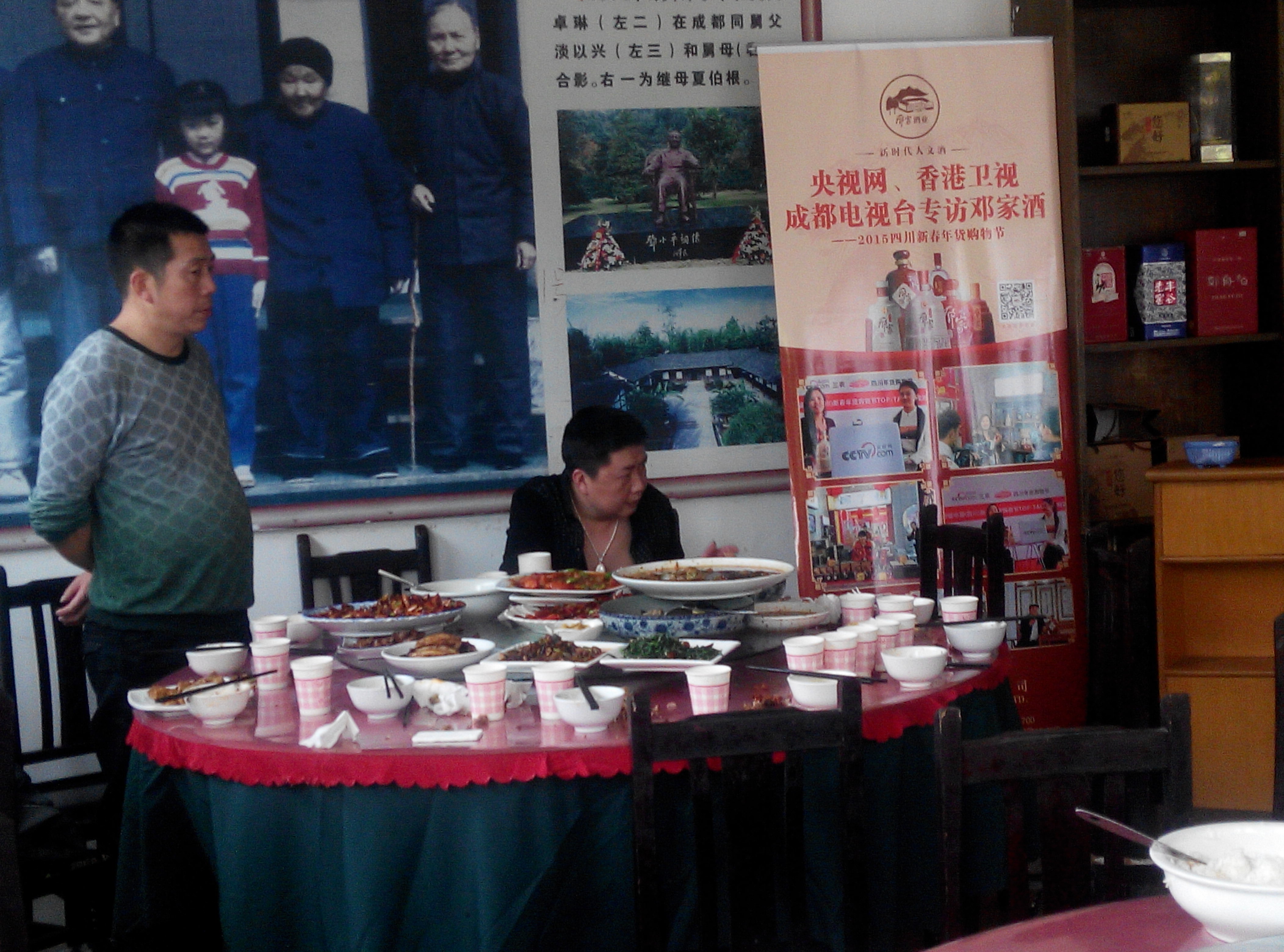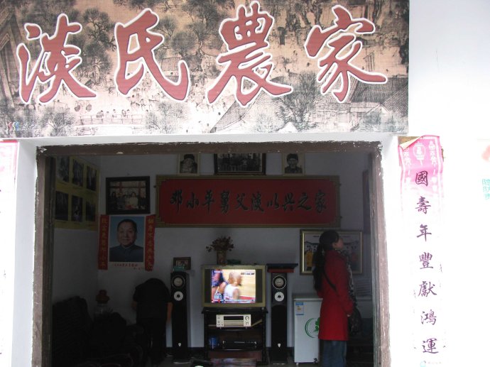 1月的广安是旅游淡季,人比较少,以至整个街道似乎只有我们几个游客。我们到淡家的时候,淡家人显然很高兴。淡文全的老伴和女儿立即忙起来,端茶送水。家中有个厨师,但因没有啥客人已经回自己家去了,立即找人去叫来。淡文全只是度着步微笑着看着这一切。 我们抓紧时间,楼上楼下参观。这里是极一般的民居,在周围算不上是最好的,应该是比较普通的。不过,邓小平的名字确实给淡氏农家带来了更多的生意。当我们坐下来吃饭时,又有一对游客慕名而来。此时,其他的农家饭庄似乎并不见有人出入。