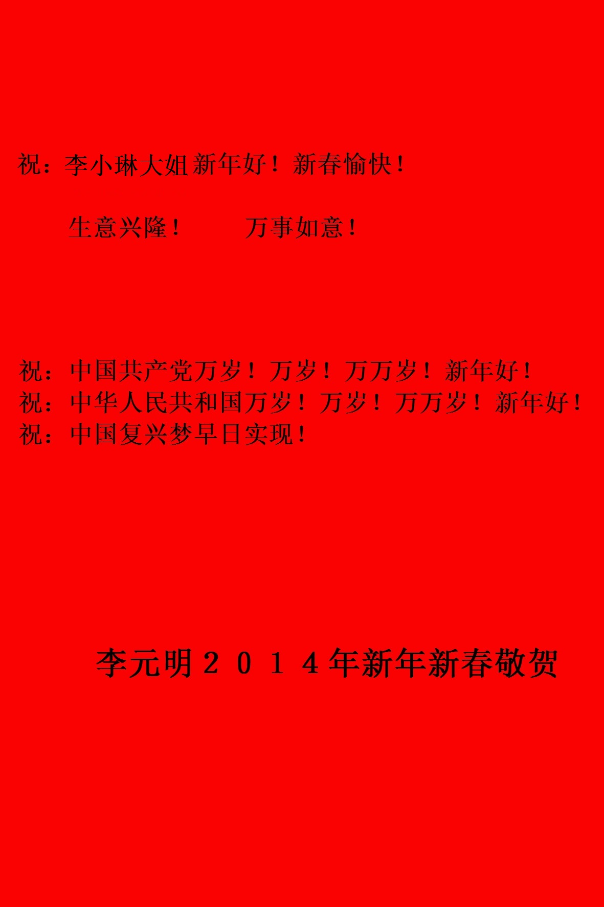 下面是2014年李元明向中电国际董事长李小琳大姐拜年贺卡: