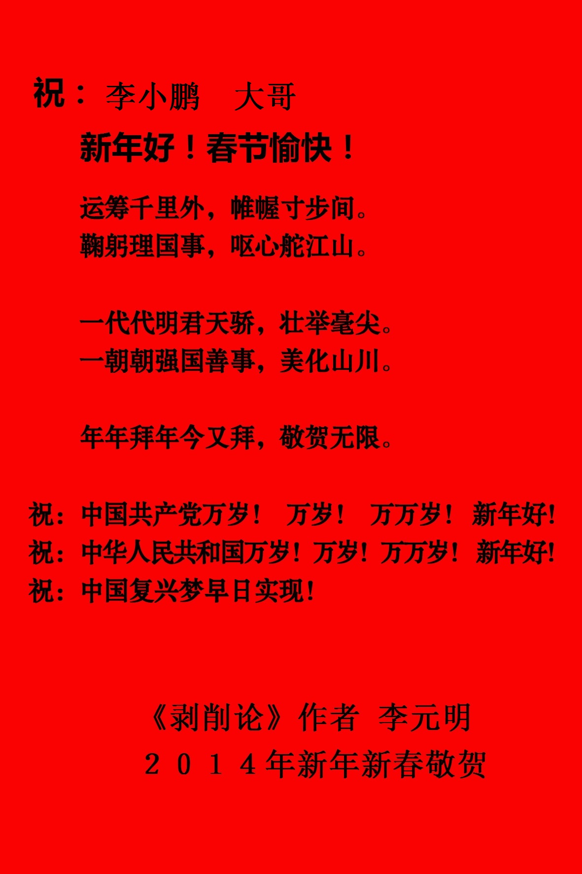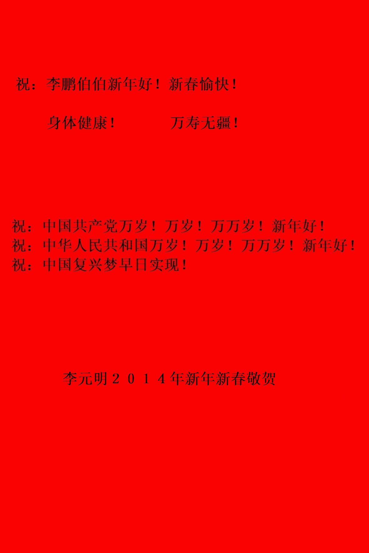 下面是2014年李元明向原国务院总理李鹏伯伯拜年贺卡: