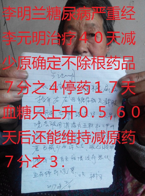 李元明大夫25付药治愈2年糖尿病患者