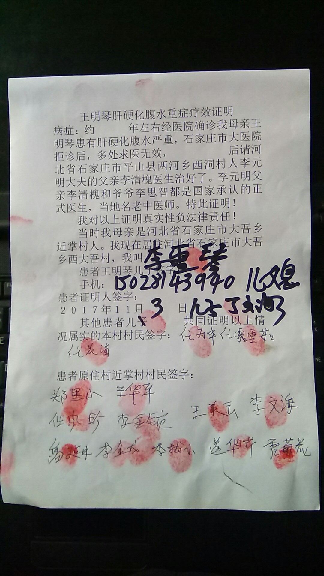 李元明大夫父亲李清槐大夫治愈李联海肝硬化腹水大量吐血