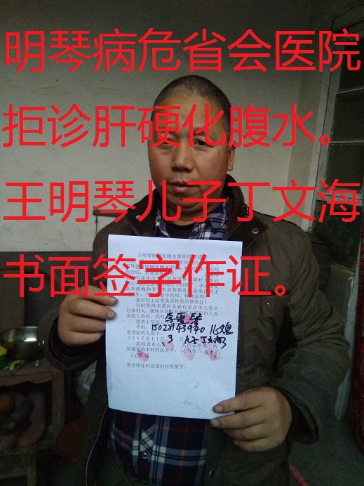 3、下图为肝硬化患者王明琴治愈后,儿子丁文海书面证明照片。