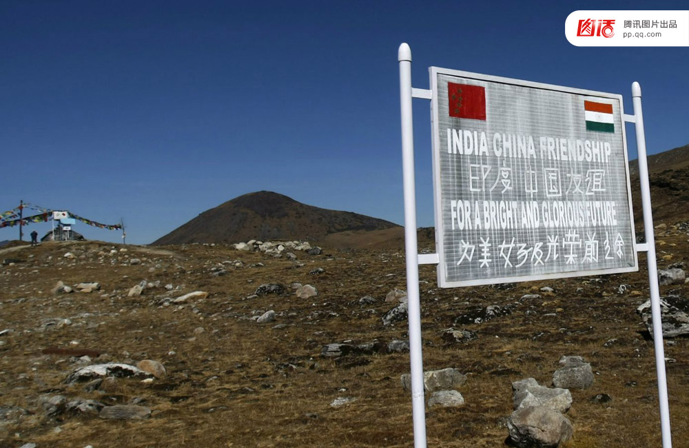 图为中印边界,牌子上字样为:“印中友谊有着美好且光明的未来。”尽管中印两国进行了多轮会谈,但由于双方意见分歧较大,中印边界问题仍无长足进展。紧张感从未离开荒凉的喜马拉雅山南麓;士兵们的身影也总是提醒着人们——没有结束。