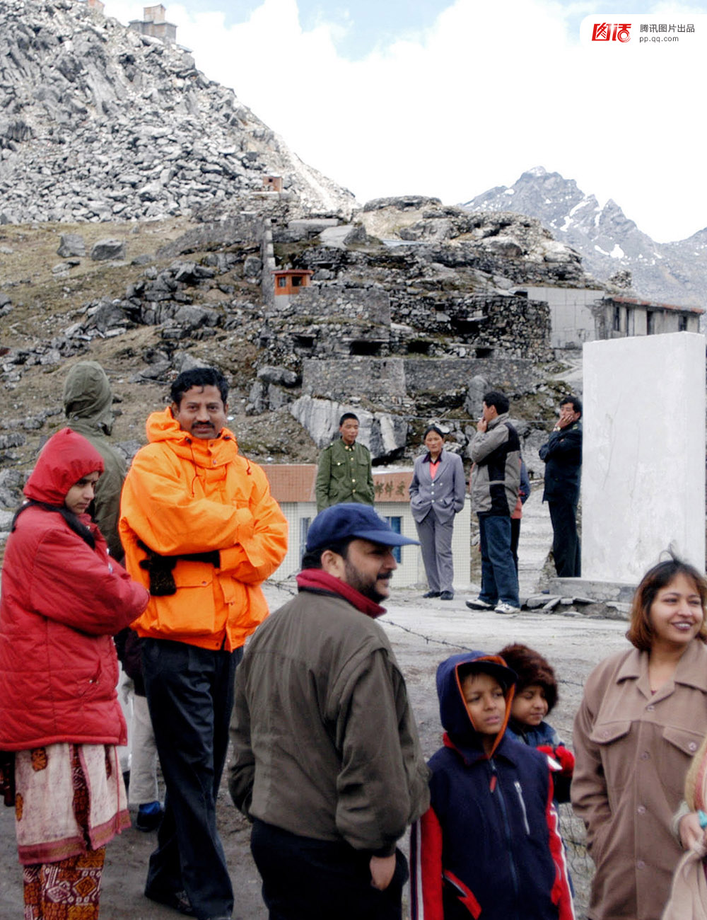 1998年印度核试验让两国关系降至冰点,但不久两国关系又升温。2004年之后,随着印巴关系的改善,给中印关系带来了好的影响。图为2004年,印度游客在边境一侧与中国游客打招呼。