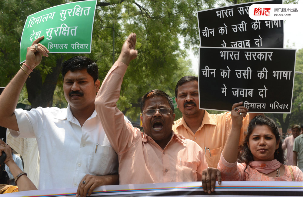 印度媒体曾报道:“中印两军陷入为期三周的僵持。约50名中国士兵于2013年4月15日越过实际控制线,在印度领土上搭起帐篷,安营扎寨。”而2014年9月,印度军方在边界地区建起一个可观察中国士兵举动的观察屋,导致两军持续三周在边界对峙。图为2013年,印度新德里,人们在中国大使馆门口抗议。
