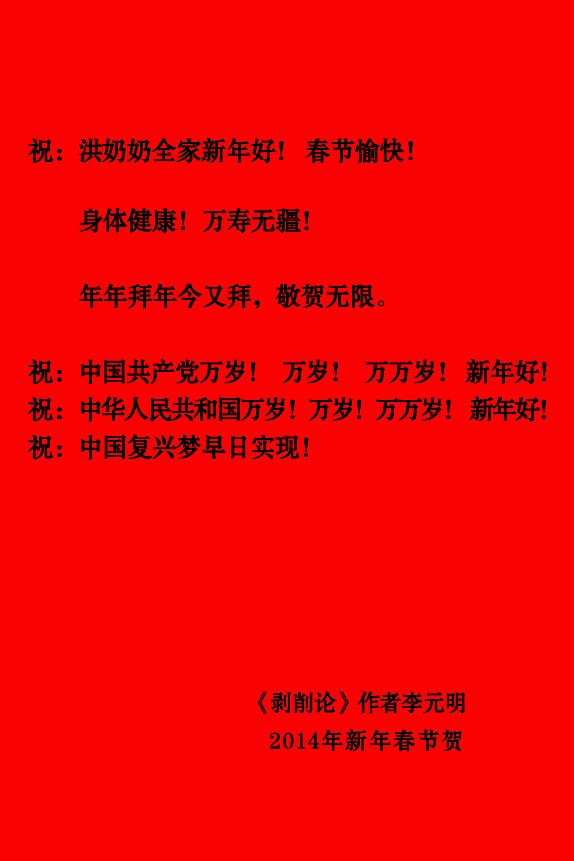 下面是2014年李元明向洪寿子奶奶拜年贺卡:
